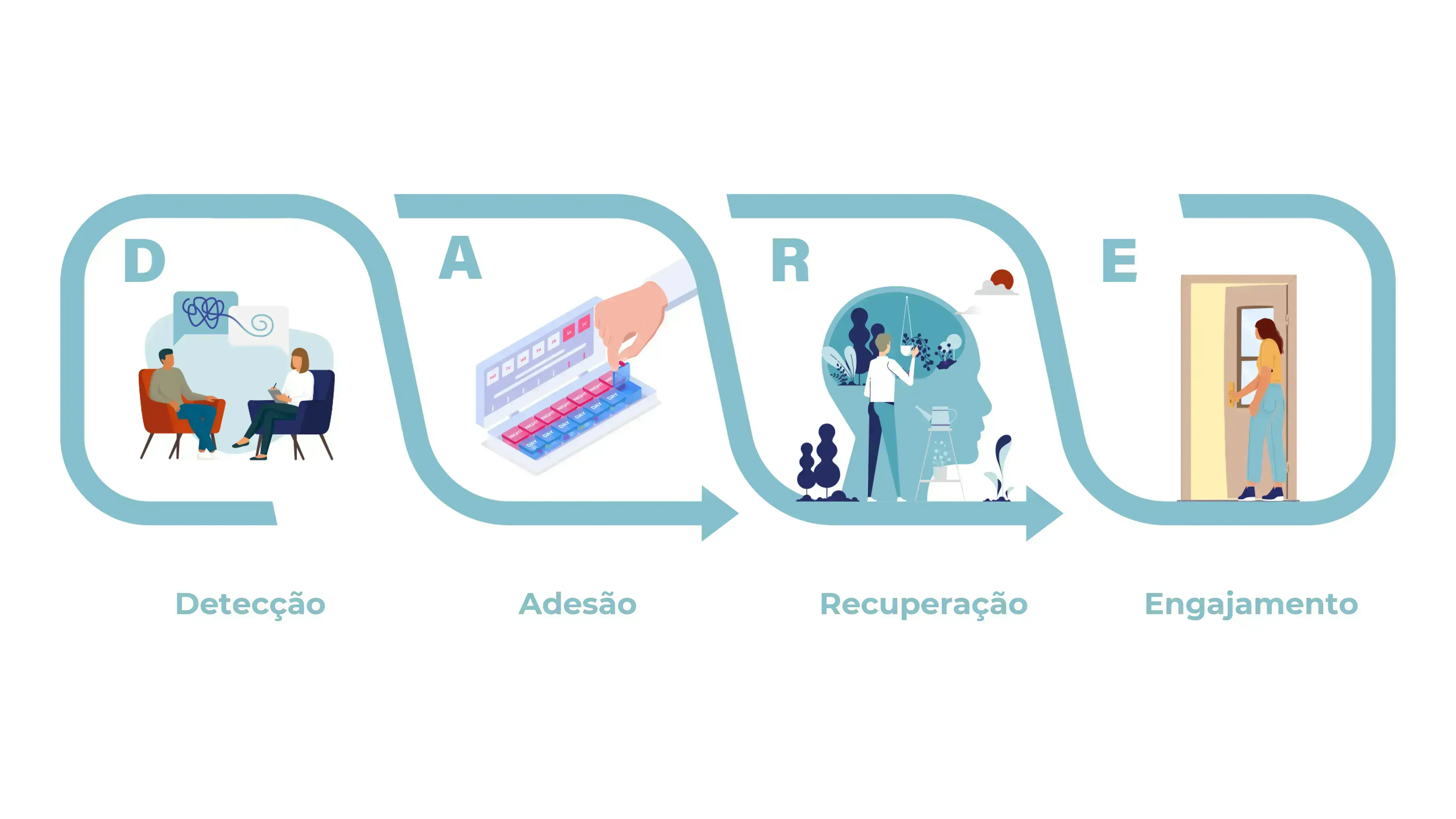 A necessidade de avaliar a adequação da medicação para otimizar o engajamento da vida em pacientes com esquizofrenia foi uma mensagem-chave da apresentação do Dr. Mattingly.3 Esta sessão começou com o palestrante pedindo ao público para "desafiar (tradução de DARE) mover a agulha na esquizofrenia". O acrônimo DARE significa Detecção precoce, tomada de decisão compartilhada para melhorar a Adesão, estabelecimento de metas para a Recuperação funcional além da melhora dos sintomas e melhora do Engajamento em atividades de vida significativas e com propósito.3